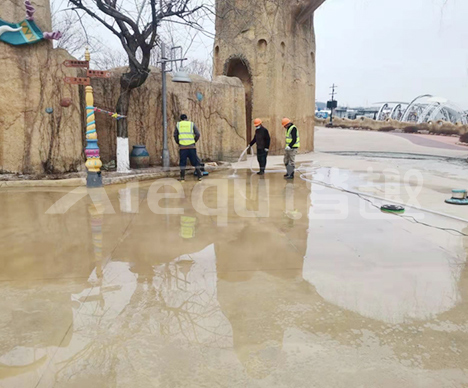 大連海昌是臨海樂園,海風使空氣中含有鹽分,在一定程度上會加速路面的老化,所以需要以最經濟實惠可行的方法進行翻新。