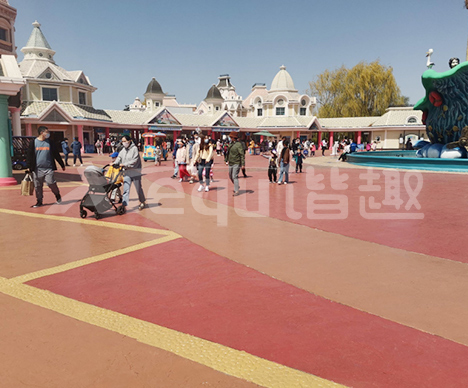 現如今隨著時代的變化,我們見過一些七八十年代成立的樂園至今還存活著營業著,這是一種情懷;是一種堅持,值得尊敬。雖然各種游樂設備,各種裝飾外包裝在更新換代,但園區的路面已經老舊,有的是普通的水泥路,有的是瀝青路,這已經跟不上時代的潮流了。園區的負責人很苦惱也想對路面進行改造,可他們無從下手,不知道更換成什么樣的路面才行。所以有些客戶找到我們幫著解決問題。