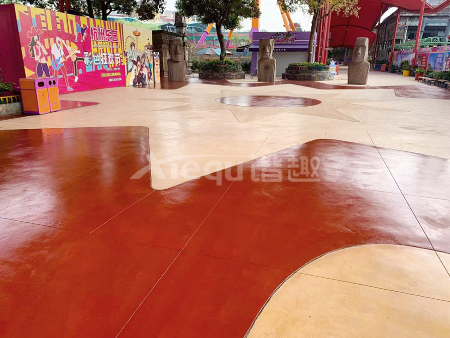 彩色混凝土洗砂地坪被廣泛應用于各類游樂園、海洋公園、主題公園、景觀地坪等地面鋪裝。